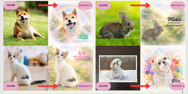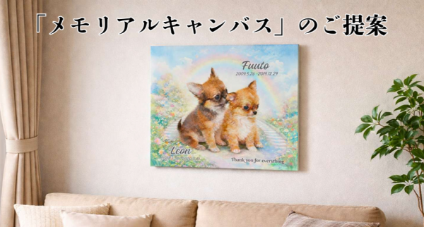 新商品 メモリアルキャンバスのご案内です。亡くなった子の写真を基にして制作を行ないます。